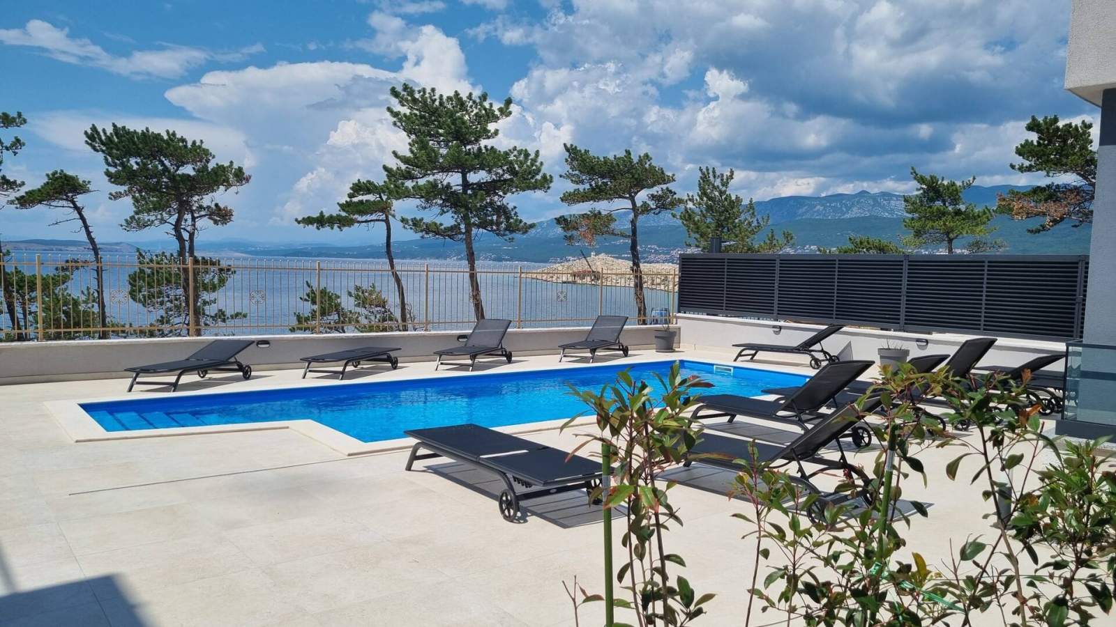 S namještene terase (15 m2) pruža se prekrasan pogled i na bazen i na more. Bazenski prostor u prizemlju opremljen je ležaljkama, suncobranima i vanjskim tušem te omogućuje izravan pristup moru za ugodno kupanje. Zajednička praonica rublja u prizemlju uključuje perilicu rublja, kapsule/deterdžent za pranje rublja i glačalo za goste.