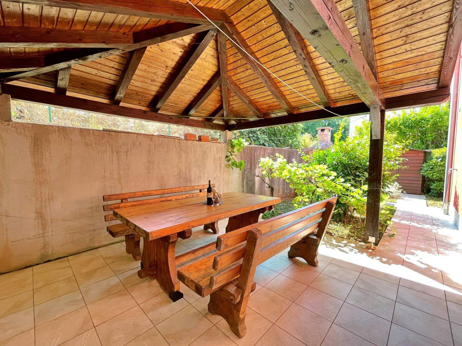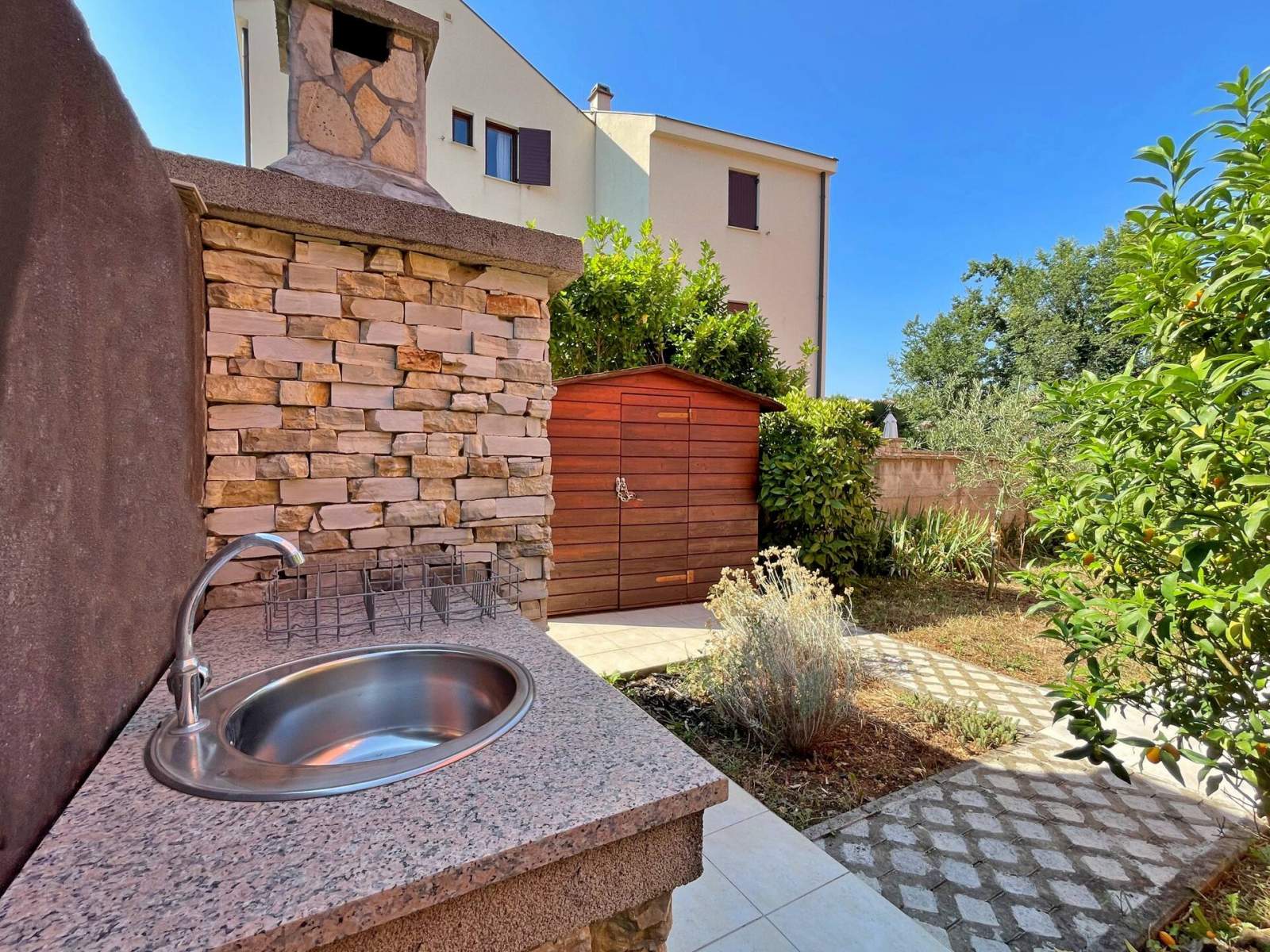 Vanjski sadržaji uključuju prostor za roštiljanje te vanjski tuš. Za dodatnu udobnost, tu je perilica rublja i privatni parking. Bilo da uživate na obližnjim plažama, istražujete centar mjesta ili se jednostavno opuštate na svojim privatnim terasama, ovaj dom ima sve što vam je potrebno za nezaboravan boravak!