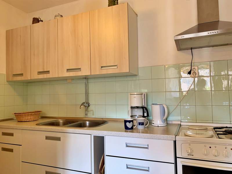 Prostran apartman u prizemlju samo 160 m od mora. Ima kuhinju sa štednjakom, pećnicom, hladnjakom sa...