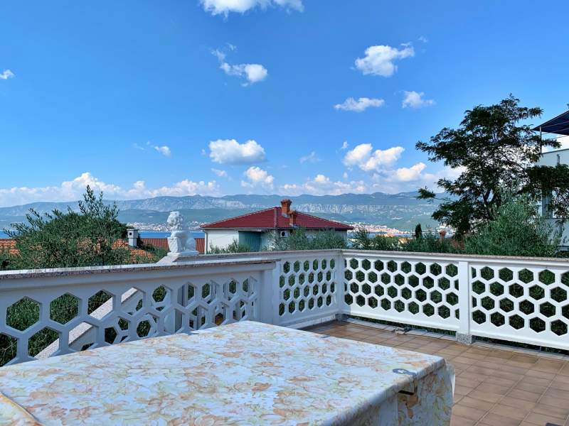 Ovaj prostrani apartman na prvom katu nalazi se samo 160 m od mora. Sadrži potpuno opremljenu kuhinju s električnim/plinskim štednjakom, pećnicom, hladnjakom sa zamrzivačem, aparatom za kavu, kuhalom za vodu i tosterom. Kuhinja je povezana s blagovaonicom/dnevnim boravkom koji uključuje prostor za sjedenje i kabelsku/satelitsku TV. Svaka od četiri spavaće sobe ima bračni krevet i umivaonik. Dvije međusobno povezane kupaonice imaju dva tuša, tri umivaonika i dva WC-a. Balkon od 10 m2 s pogledom na more dostupan je iz svake spavaće sobe, dok velika terasa od 30 m2 također nudi prekrasan pogled na more. Gosti mogu uživati ??u zajedničkom prostoru za roštilj u prizemlju i privatnom parkiralištu s nadstreškom. Besplatan Wi-Fi dostupan je u cijelom apartmanu.