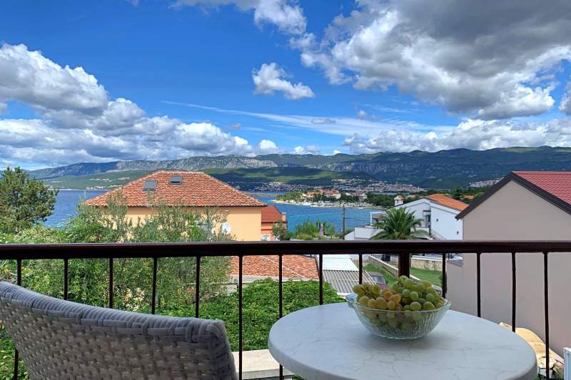Apartman se nalazi na uzvisini, 400 m od mora i 1 km od centra Baške.