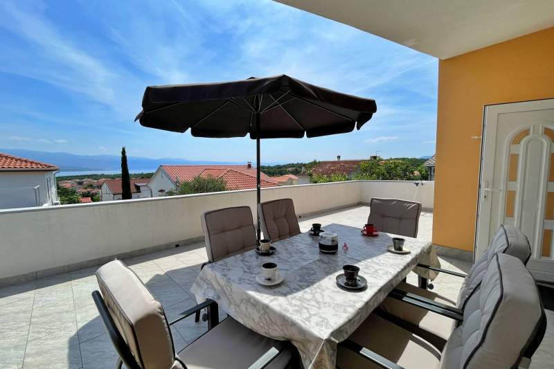 Ovaj apartman na prvom katu, 800 metara od mora i centra mjesta, savršen je za obitelji ili manje grupe. Ima tri spavaće sobe s bračnim krevetima, kaučem na razvlačenje i prostranom terasom (30 m2) s pogledom na more. Kuhinja je potpuno opremljena, a u dnevnom boravku nalazi se klima uređaj i satelitska TV. Sadržaji uključuju Wi-Fi, perilicu rublja, besplatno parkiralište, zajednički roštilj i dječji krevetić na upit. Kućni ljubimci su dobrodošli uz nadoplatu.