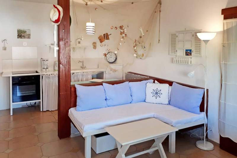Apartman ima potpuno opremljenu kuhinju s blagovaonicom (dodatni ležaj na kauču) te kupaonicu (tuš, WC).
