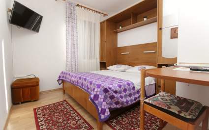 Soba s vlastitom kupaonicom za 2 osobe (bez kuhinje), smještena na 3. katu (površine 9 m2). Ima bračni krevet i vlastitu kupaonicu (tuš, WC). Nema balkon. Soba je opremljena klima uređajem, SAT TV-om i besplatnim Wi-Fi-jem. Osigurano je besplatno parkirno mjesto za jedan automobil. Soba se nalazi 500 m od mora i 350 m od centra Baške. Kućni ljubimci nisu dozvoljeni.
