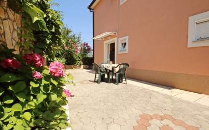 Ground floor apartment for 2- 3 persons, surface 32 m2, one bedroom, equipped kitchen with dining area, living room with extra bed (couch for 1 persons), bathroom with a shower, terrace (15 m2) with grill, parking place 50 m distance from apartment, free Wi-Fi. 50m distance to the sea and 1.2km to the centre. Pets are not allowed.