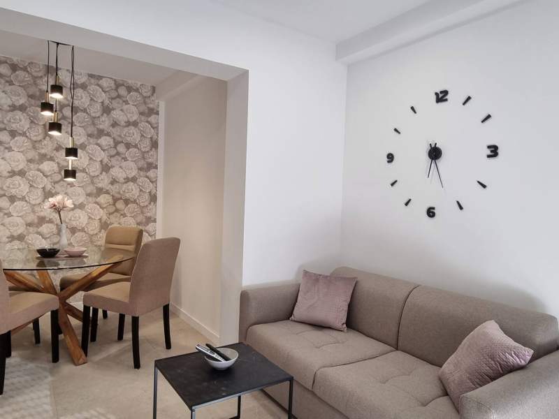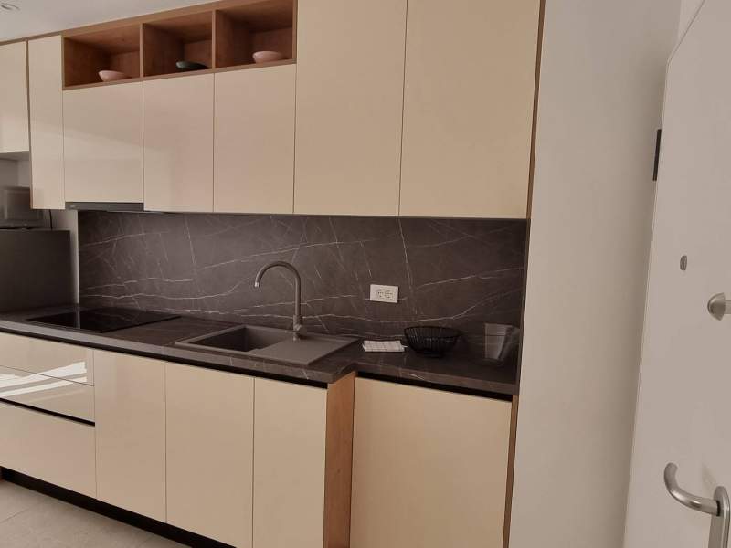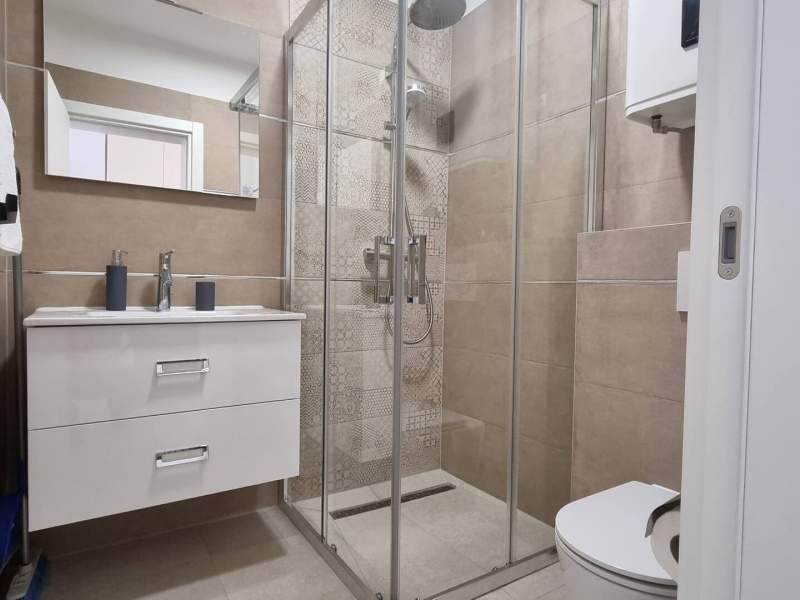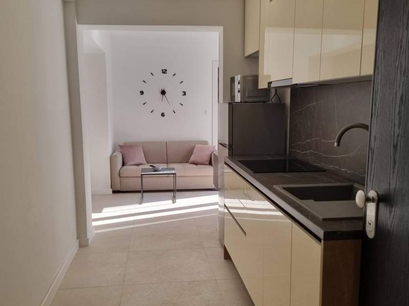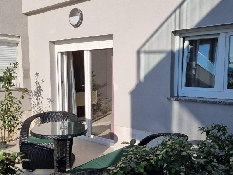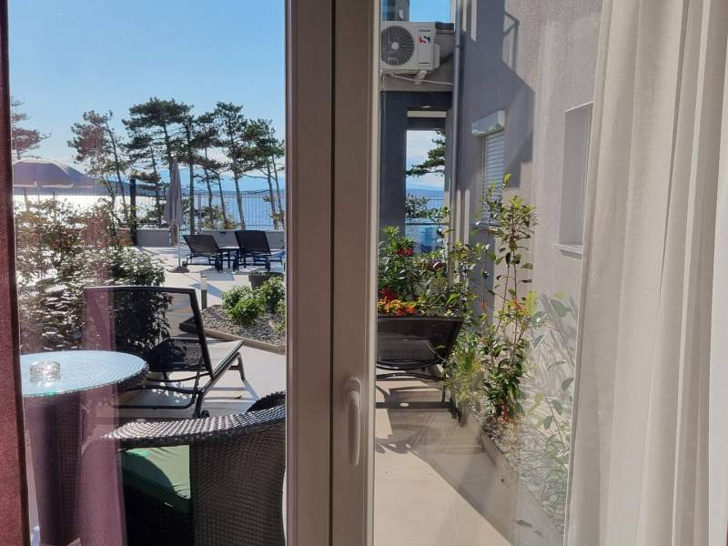 Questo appartamento si trova al piano terra e puo ospitare un massimo di 2 persone. E modernamente attrezzato con due condizionatori d'aria e un Smart TV con programmi satellitari. Le lenzuola e gli asciugamani sono forniti. La cucina e dotata di piano cottura a induzione con tutte le stoviglie necessarie, frigorifero con congelatore separato, macchina per il caffe, tostapane, bollitore, lavastoviglie e forno a microonde. L'appartamento ha una terrazza (16 m2) e vista sul mare.
